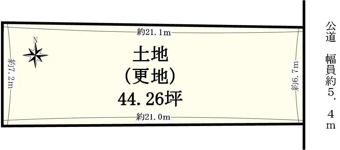 | 接道状況 | 一方道路・東5.4m(公道)接面6.7m |