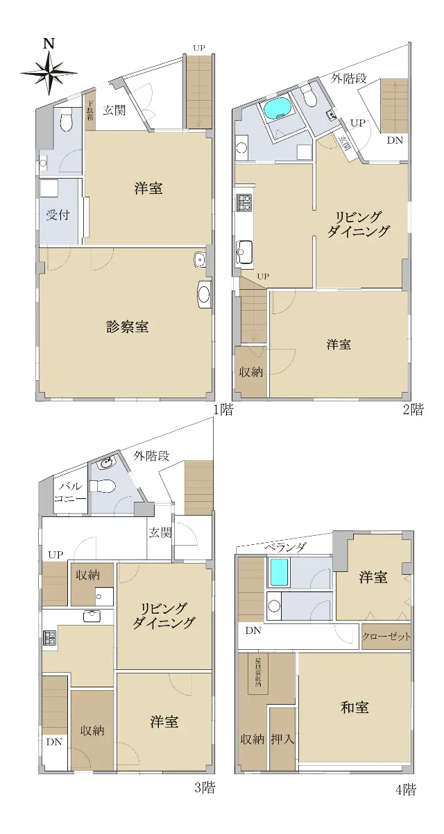 1階が診療所、2・3・4階が住宅となっています。
