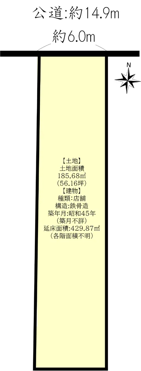 | 接道状況 | 一方道路・北14.9m(公道)接面6m |