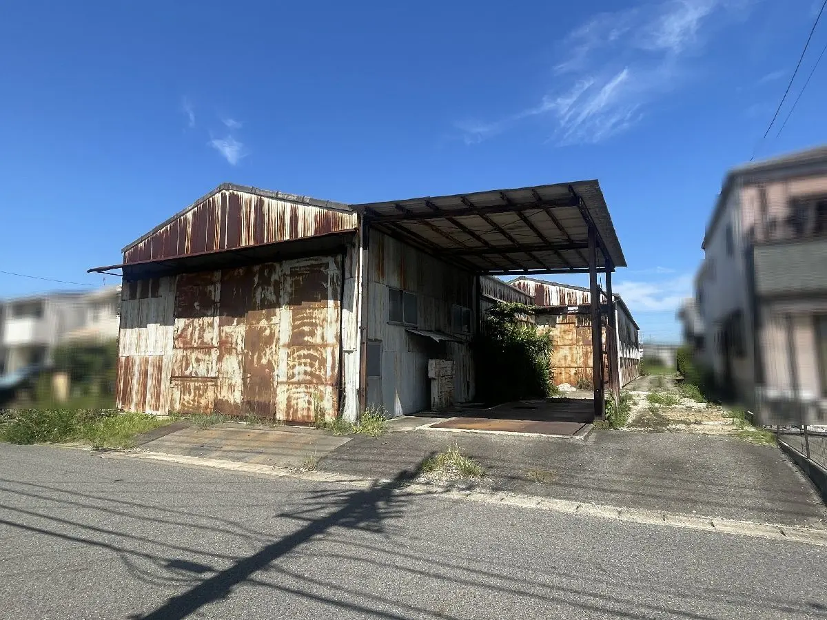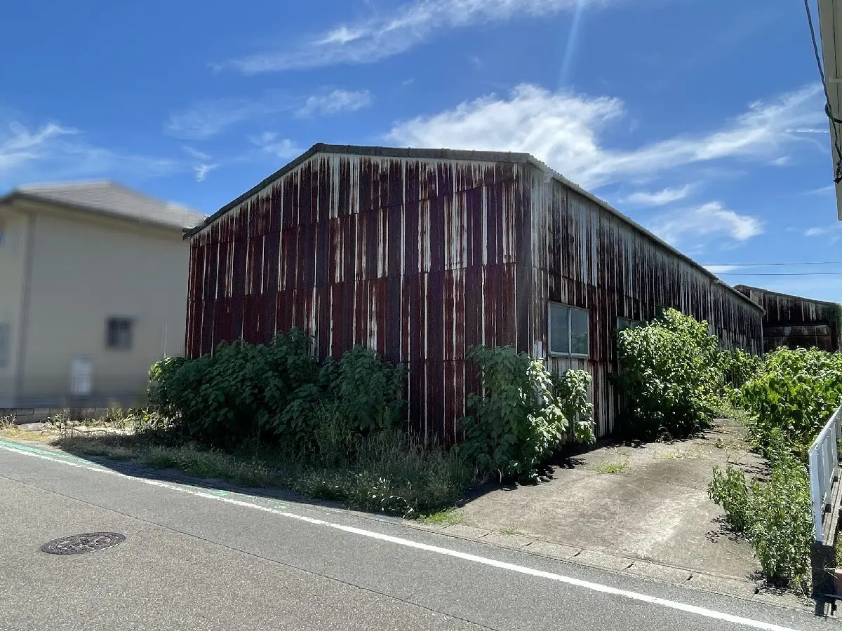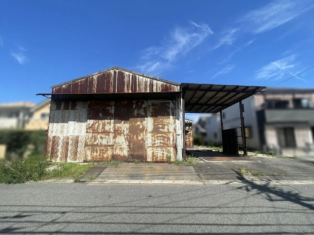 本物件は、土地面積:286.10坪、二方道路(北/南)、古家(倉庫)が建っている物件です。