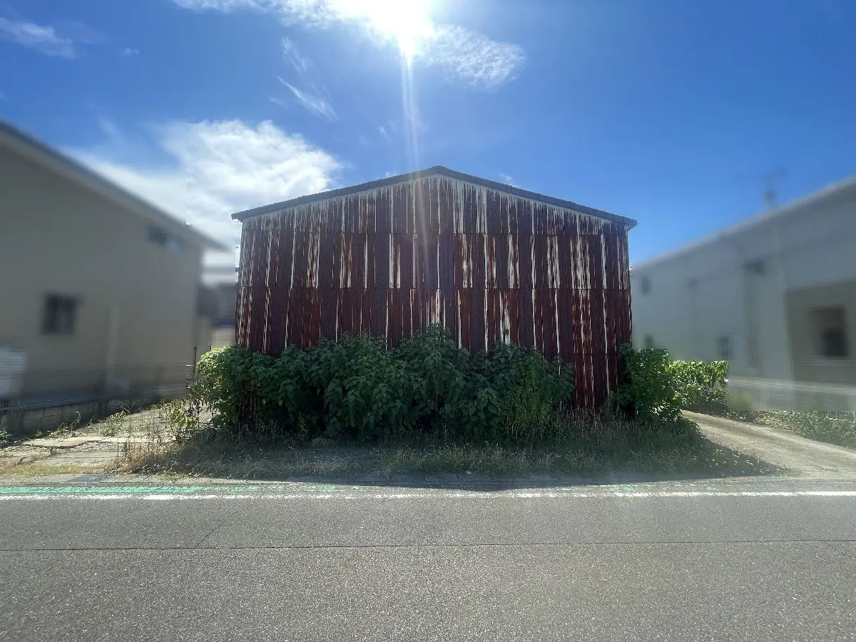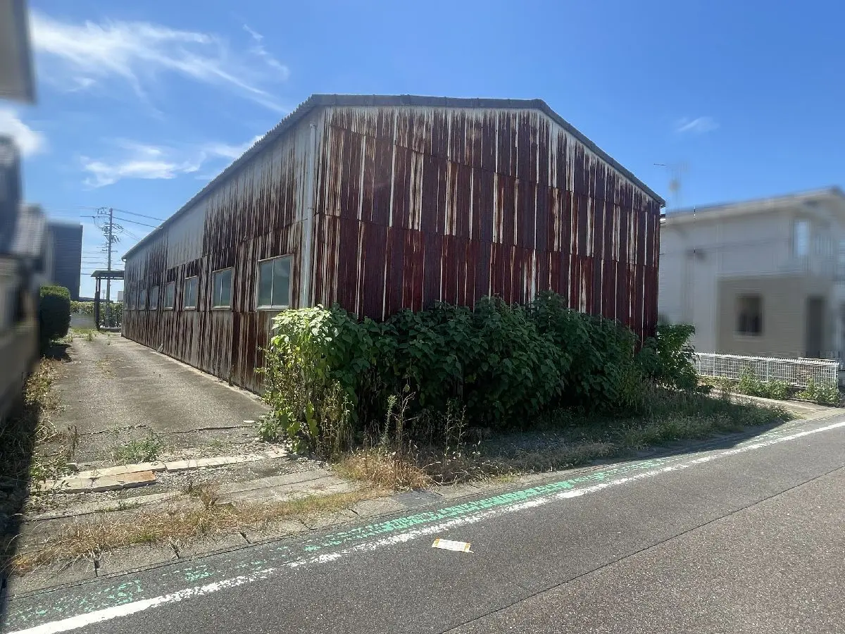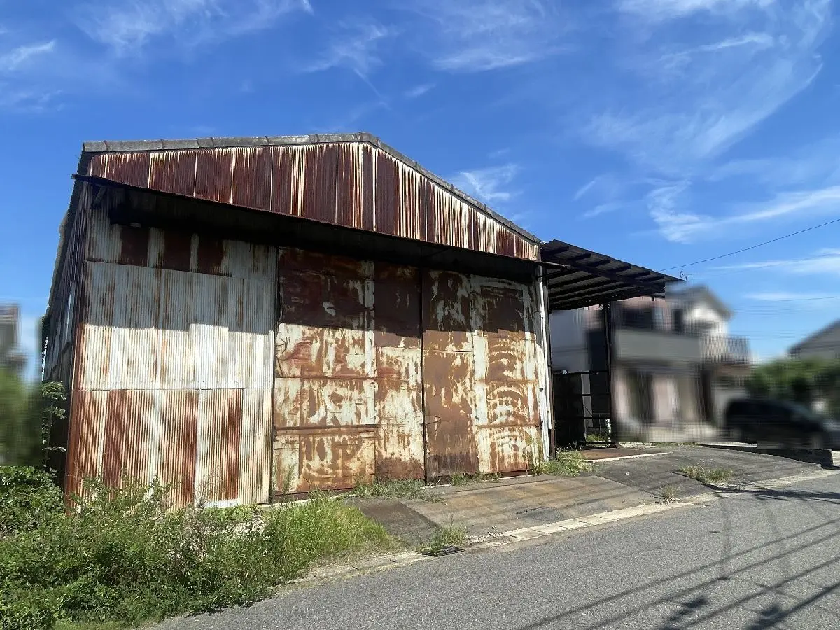本物件は、土地面積:286.10坪、二方道路(北/南)、古家(倉庫)が建っている物件です。
