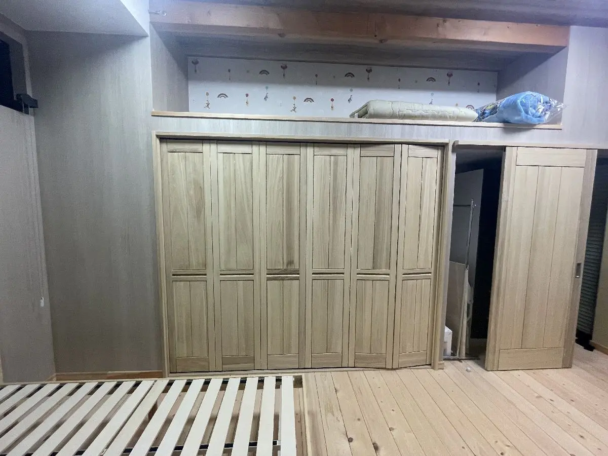 全ての建具にも拘り、床面と同じくヒノキの無垢材を使用しています。本物件をご内覧の際はまず胸いっぱいに息を吸い込み、ヒノキの香りを味わってみてはいかがでしょうか。
