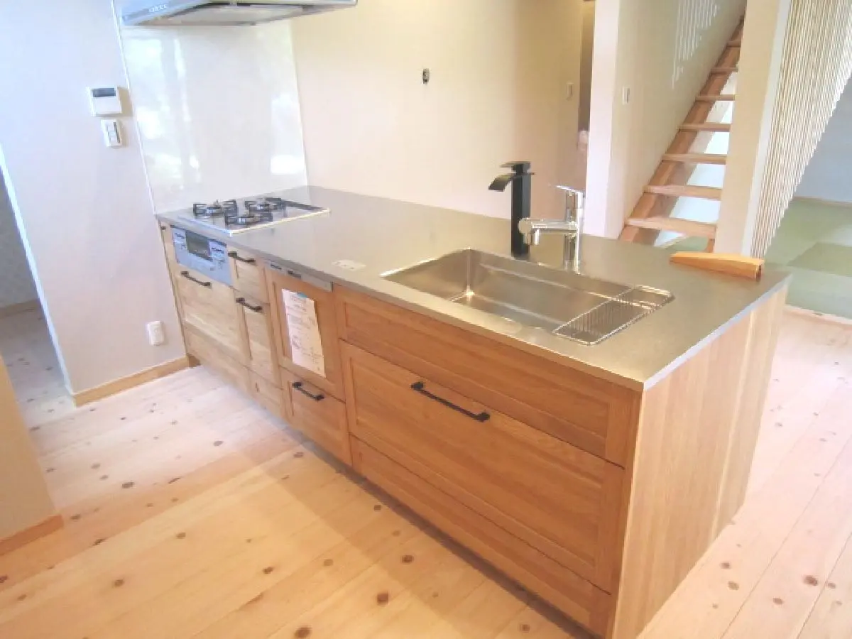 もちろんお住まいの方のことを考えて、機能面も充実しております。キッチンはWOODONE 社の su:iji(スイージー)を採用、その他お手洗いや浴室といった水廻り設備も一新してございますので、すぐに新生活を始められます。