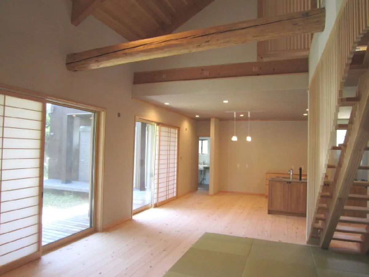 リビング含め床面はすべてヒノキの無垢材、壁や天井には一部を除き塗り壁を採用しています。自然由来の素材に包まれた本物件は、夏は涼しく冬は暖かく、全身で自然の優しさを感じられる設計となっております。