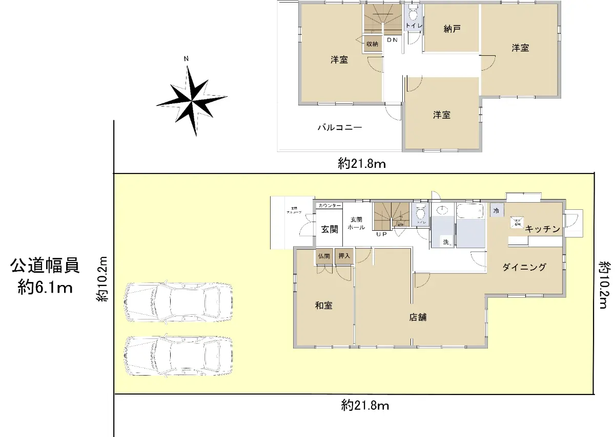 | 接道状況 | 一方道路・西6.1m(公道)接面10.2m |