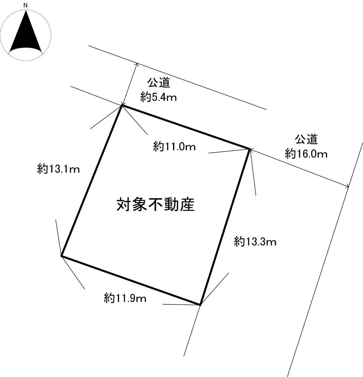 | 接道状況 | 二方道路・北東5.4m(公道)接面11m/南東16m(公道)接面13.3m |
