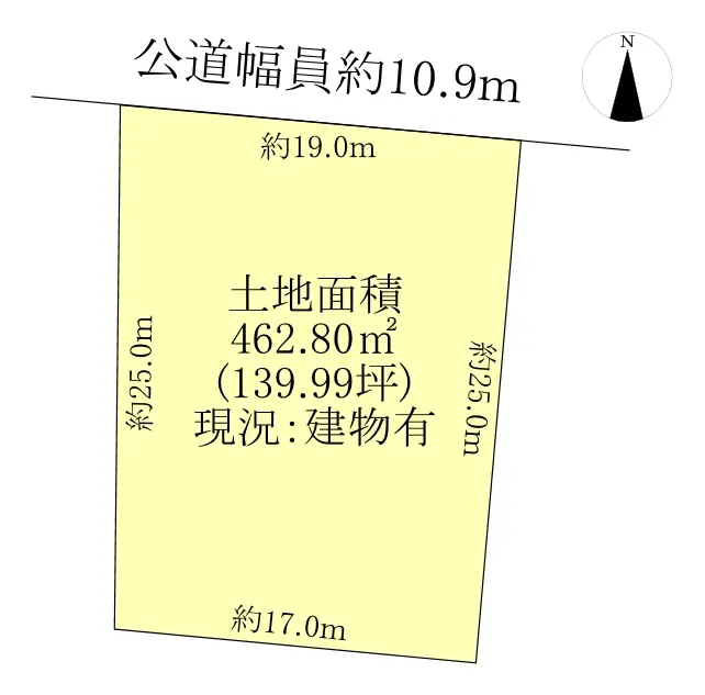 土地面積462.80u(約139.99坪)あり、間口約19.0mあります。