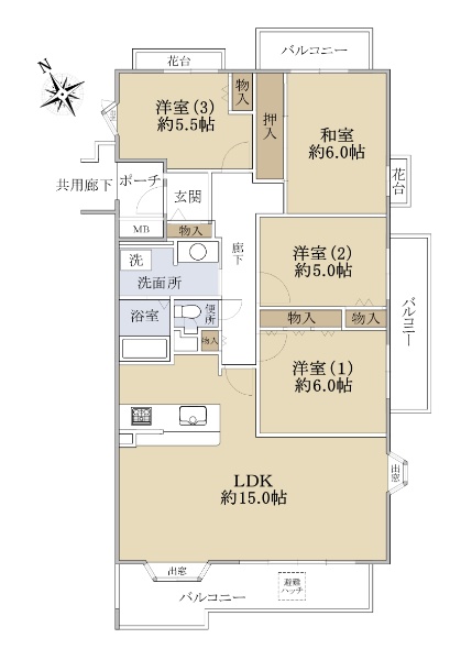 ☆南・東向き角部屋 ☆専有面積86.55u