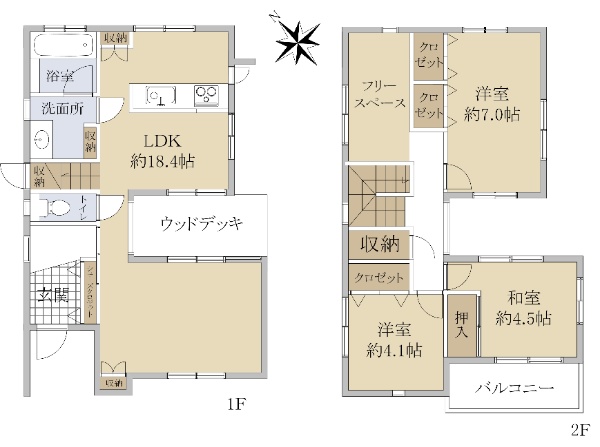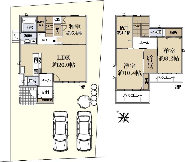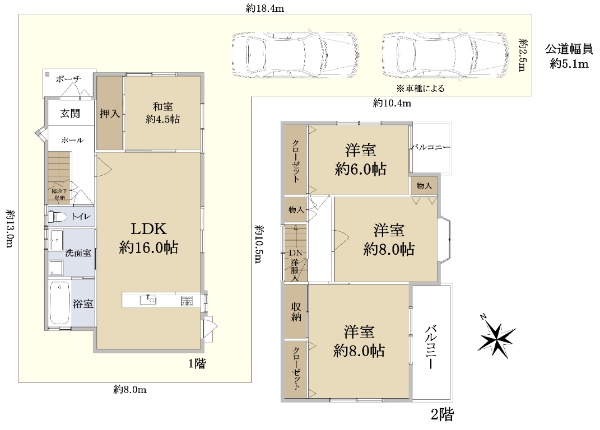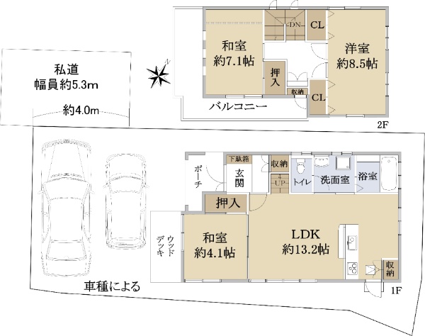 南東向き日当たり良好・駐車スペース2台分有(車種による)