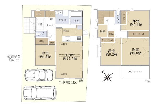 2013年12月築・駐車場2台分あり(車種による)