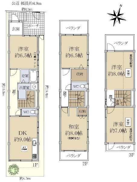 南北両面道路に面する陽当り・通風良好なお家