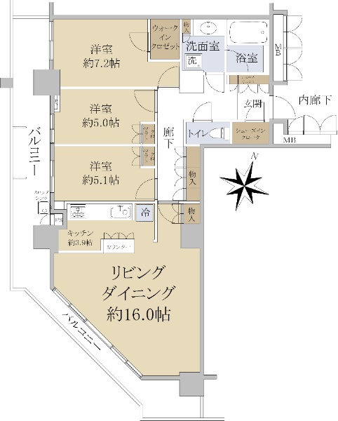 • 南向き(南西・南東含む)バルコニー方向が南向き(南西・南東含む)