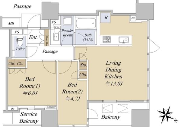 2LDK / 57.2m²