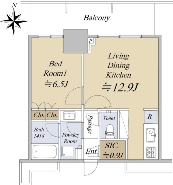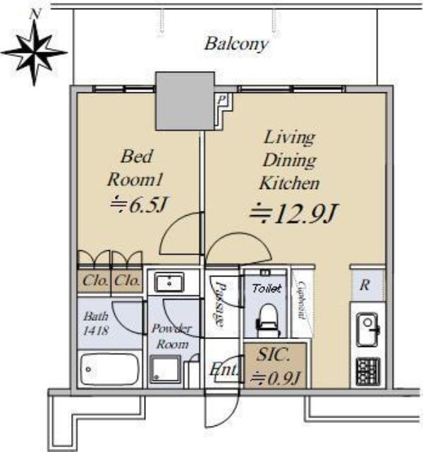 ワンルーム / 25.59m²