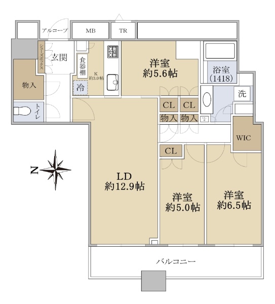 ◆専有面積76.07u(壁芯)◆間取り3LDK◆南東向きバルコニー◆角部屋