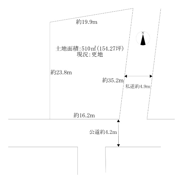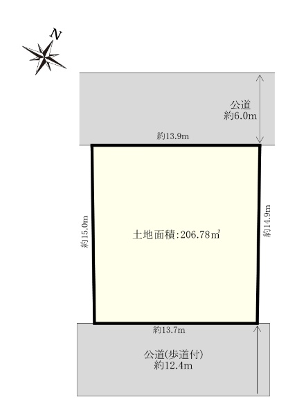 現況更地!土地面積:206.78u(約62.55坪)!南東北西の両面道路!