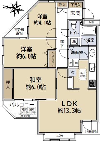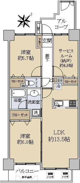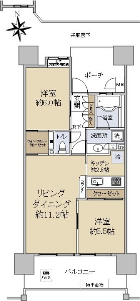 ☆南西、北西バルコニーの角部屋につき通風、日当たり良好