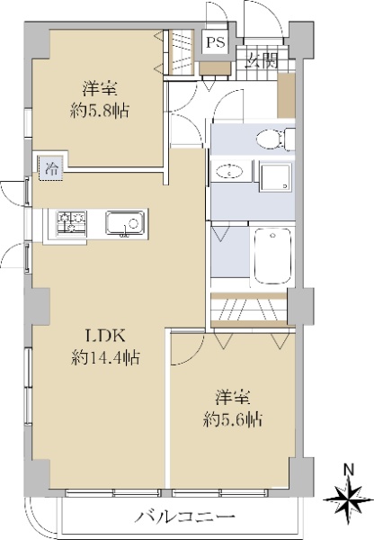 【現況空室】南東角部屋/両面バルコニー(南・北)/眺望良好/リフォーム済
