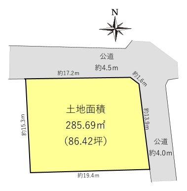 土地面積285.69u 〜見晴らしの良い北東角地〜