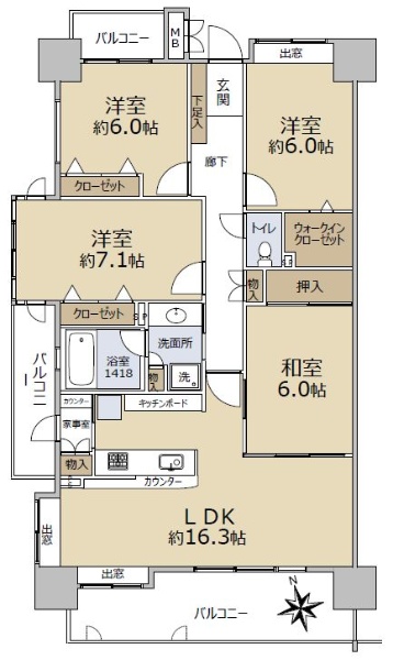 専有面積83.52u広々とした4LDKファミリータイプマンション!