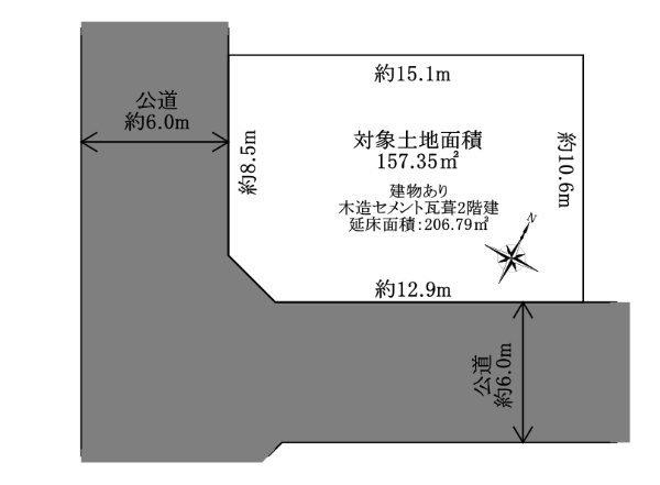 整形地 南東・南西公道角地 建築条件付き土地ではありません