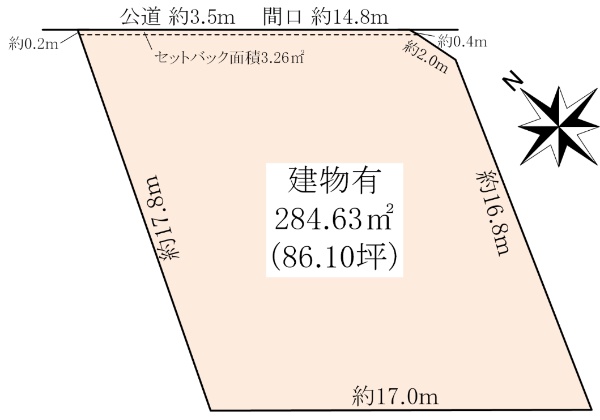■土地面積284.63u(86.10坪) ■間口約14.8m