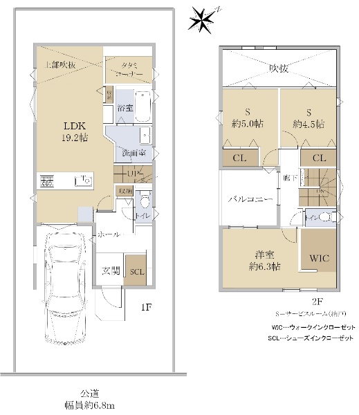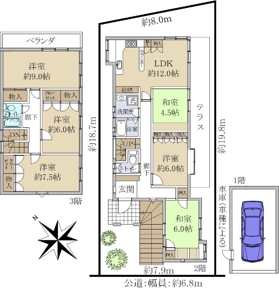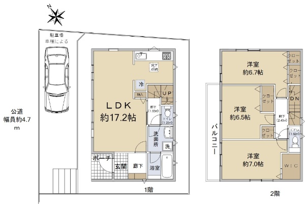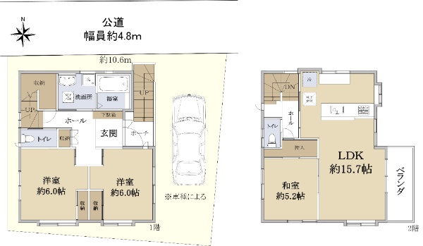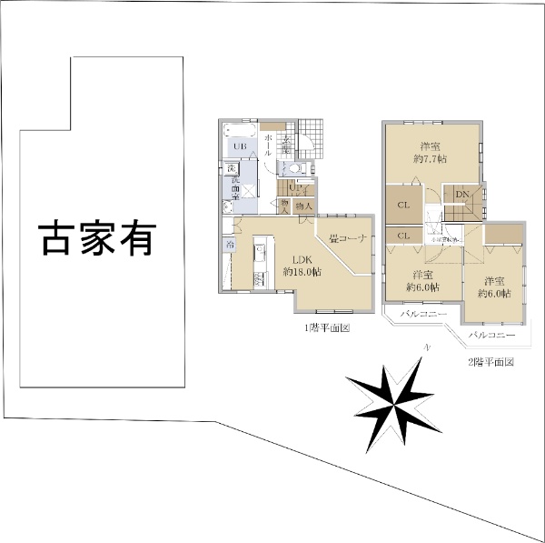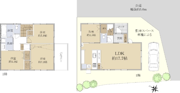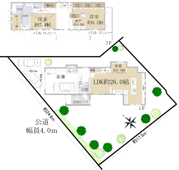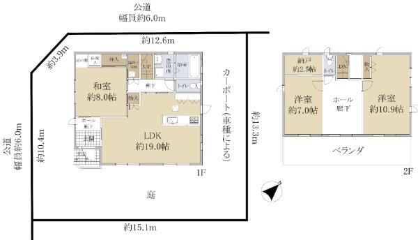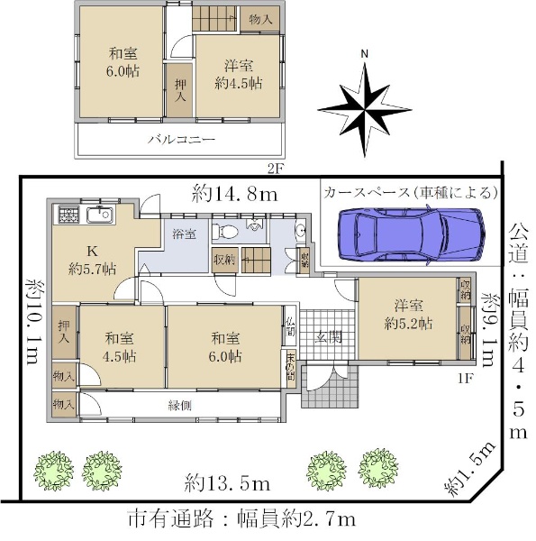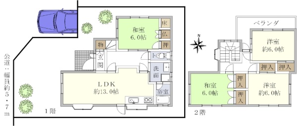 南西側と北西側が公道に面する角家です。