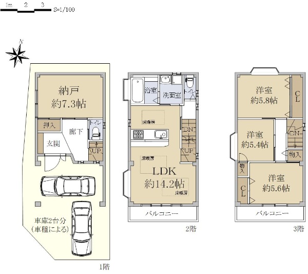 寝屋川市成田町戸建 敷地約99.6坪 駐車場3台可 平成27年8月築