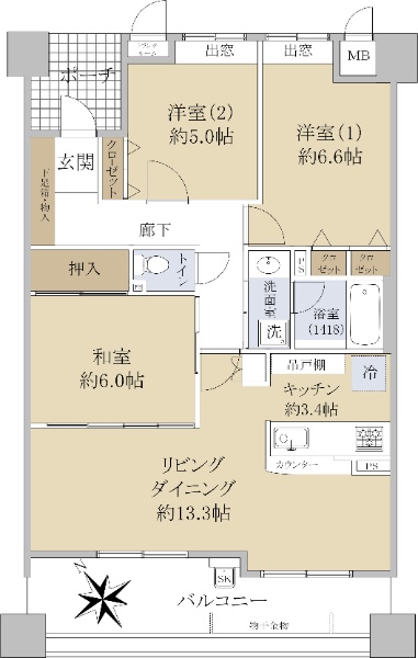 ☆3LDK☆2面バルコニー☆南向きにつき日当たり良好