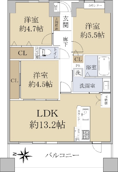 京阪電車樟葉駅徒歩7分 3LDK 角部屋