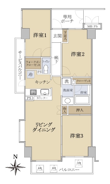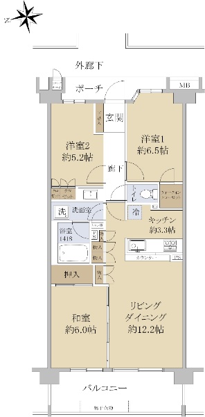 バルコニーから海が見える専有面積70.86uの3LDK
