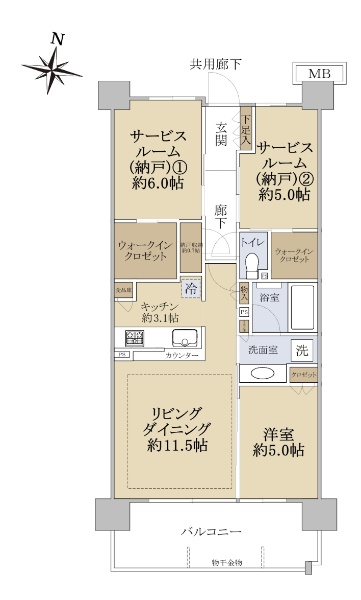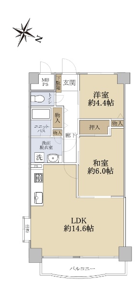 南向き住戸につき陽当たり良好です
