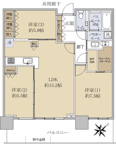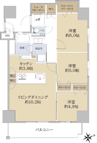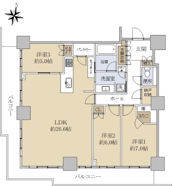 ◆角部屋◆3面バルコニーの3LDK◆ペット飼育可(管理規約による制限有)