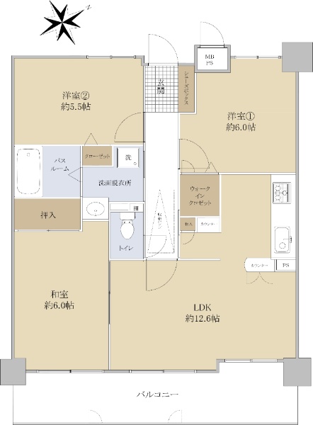 東区山根町の6階建てマンション、4LDKのお部屋