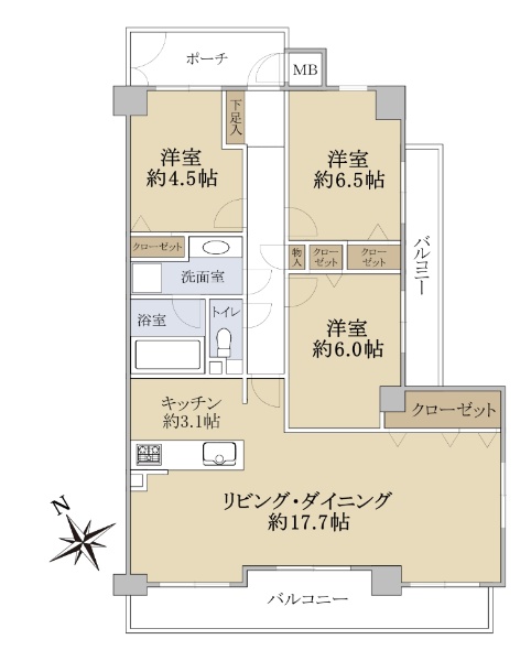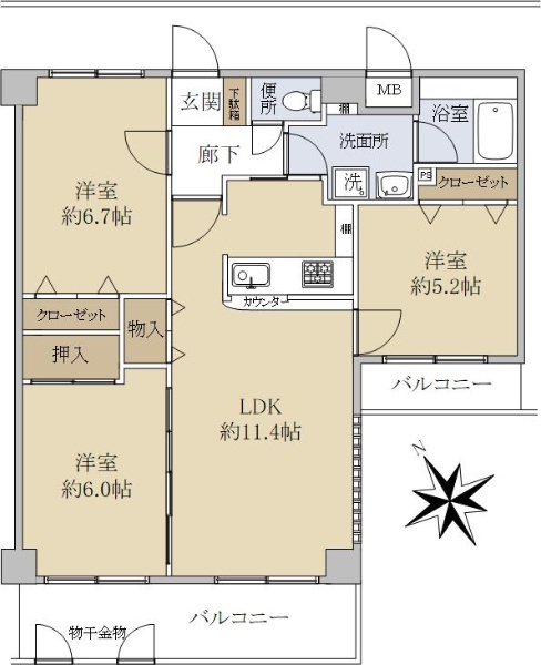 ☆専有面積68.60u ☆3LDK ☆角部屋 ☆南東向き