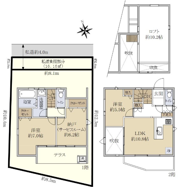 土地面積70.27坪/建物面積44.08坪/LDK約25.0帖