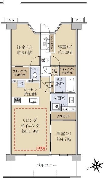 鴨居駅徒歩8分 南東向き・南東北西の両面バルコニーで明るいお部屋