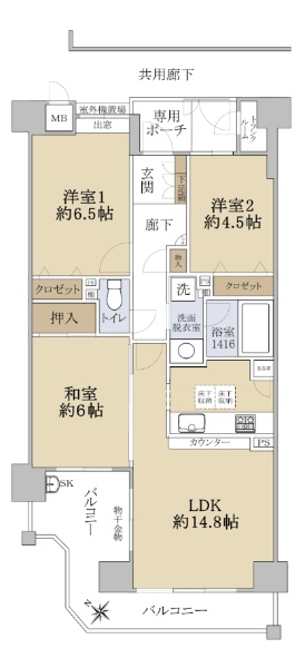 15階建て1階部分・南向き・専用庭付