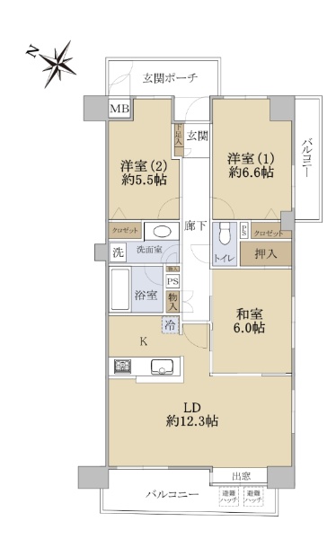 閑静な住宅街に佇む、61.44u2LDKマンション!
