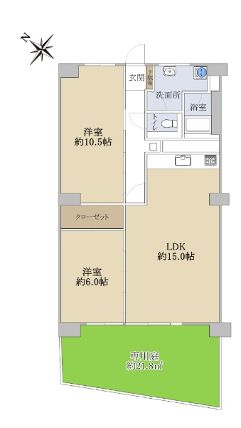 ☆南西・北西角部屋住戸☆63.50uの専用庭付き☆