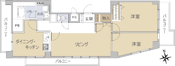 二方向(南・東)角部屋のため、リビングは開放的で明るい日差しが感じられます