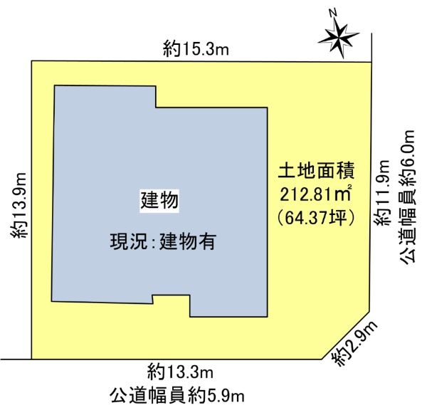 ☆土地面積:167.97u(50.81坪)南西角地 整形地