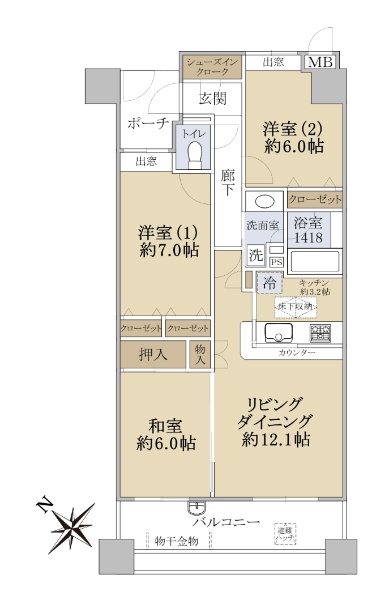 • 南向き(南西・南東含む)バルコニー方向が南向き(南西・南東含む)