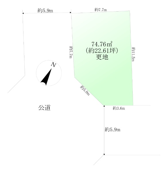 土地面積89.21u(26.98坪)・西側約6.0m公道に面す・整形地