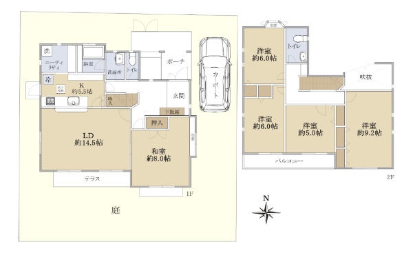 ☆4LDK!吹き抜けあり!南向きの庭!全室二面採光!☆