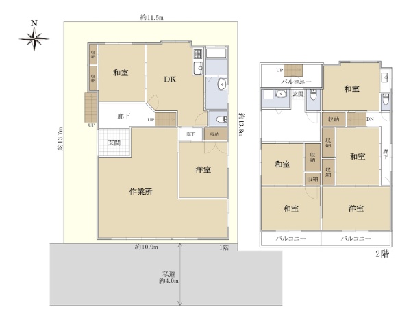 2LDK・2階建の戸建て、オール電化採用