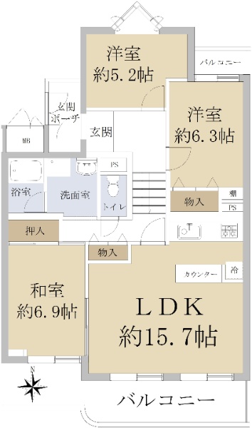 ■3方向角部屋 ■南向きバルコニー ■階下に住戸なし ■専有面積:73.17u