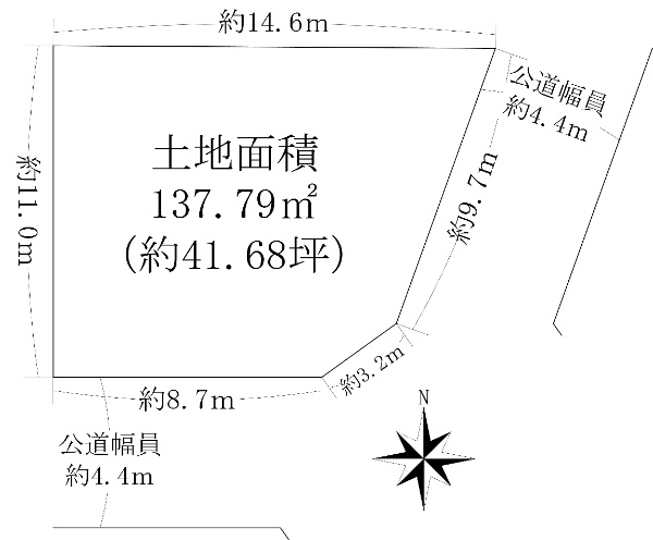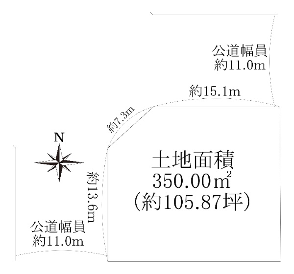 ■土地面積:350.00u(約105.87坪) ■北西角地 ■公道幅員:約11.0m