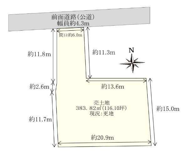 ■土地面積約66.10坪 ■2面道路 ■前面道路幅員約12.0m