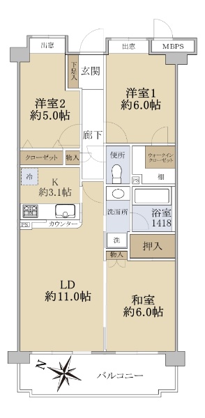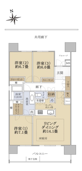 専有面積70.0u/3LDK/2016年2月築/南西向き